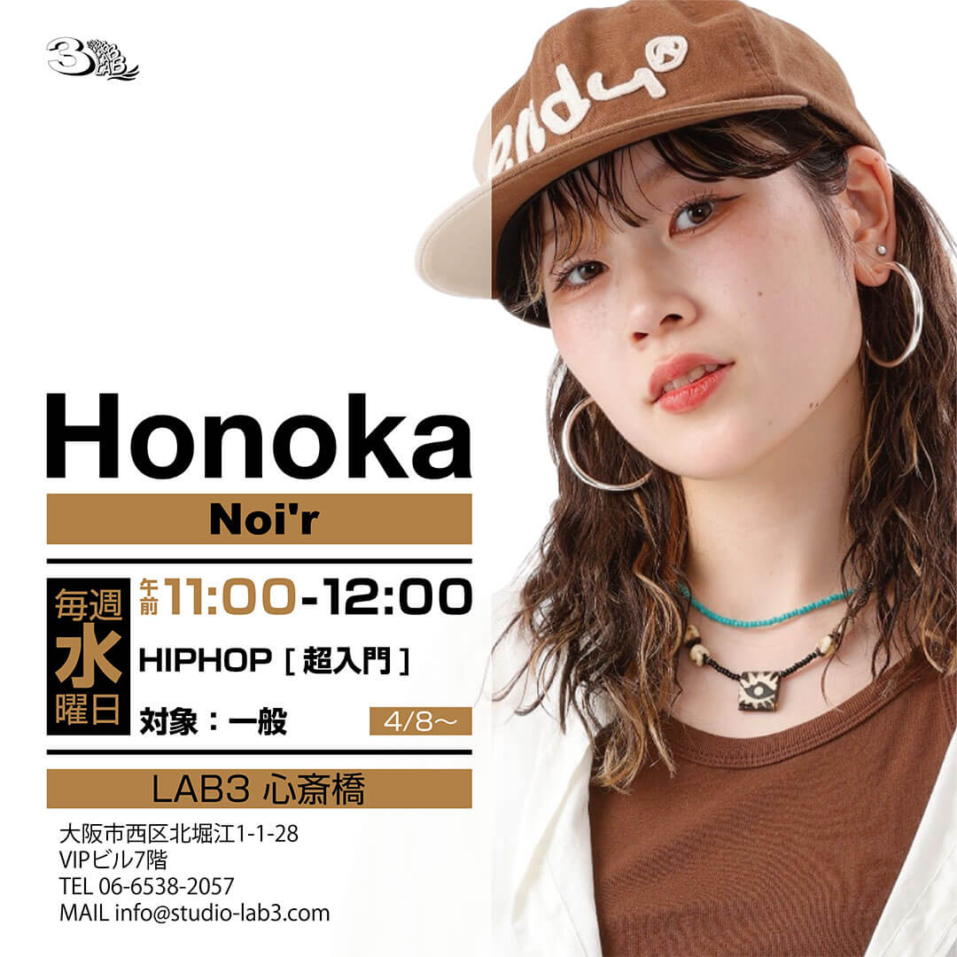 ダンススクール LAB3 大阪 心斎橋・吹田スタジオにてHonoka [Noi’r]クラスがスタートします。