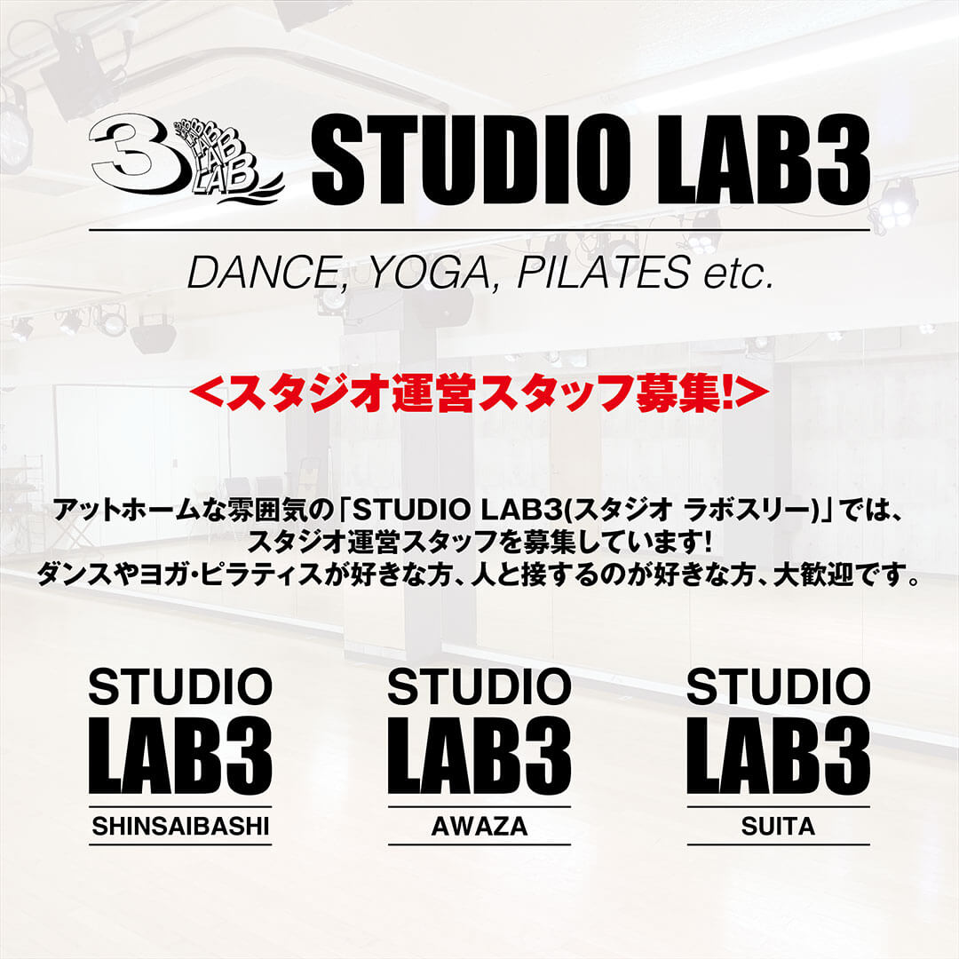 アットホームな雰囲気の「STUDIO LAB3(スタジオ ラボスリー)」では、スタジオ運営スタッフを募集しています!